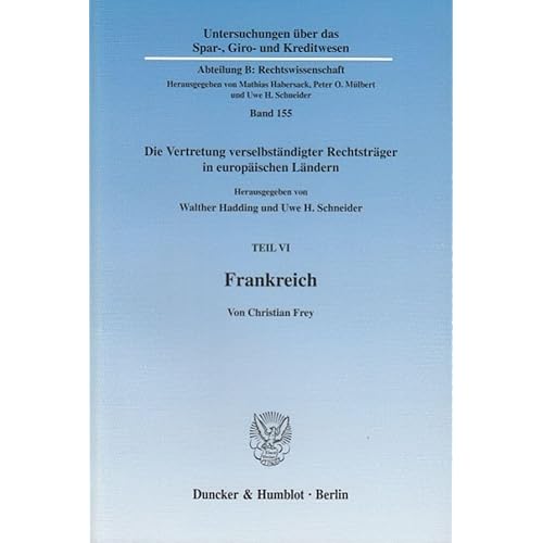 Frankreich. Vertretungsorgane in der Organisationsverfassung verselbständigter Rechtsträger des Privatrechts, Umfang, Grenzen und Nachweis der ... Hrsg. von Walther Hadding / Uwe H. Schneider.