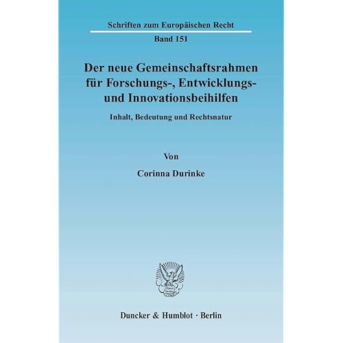 Der neue Gemeinschaftsrahmen für Forschungs-, Entwicklungs- und Innovationsbeihilfen.: Inhalt, Bedeutung und Rechtsnatur. (Schriften zum Europäischen Recht)
